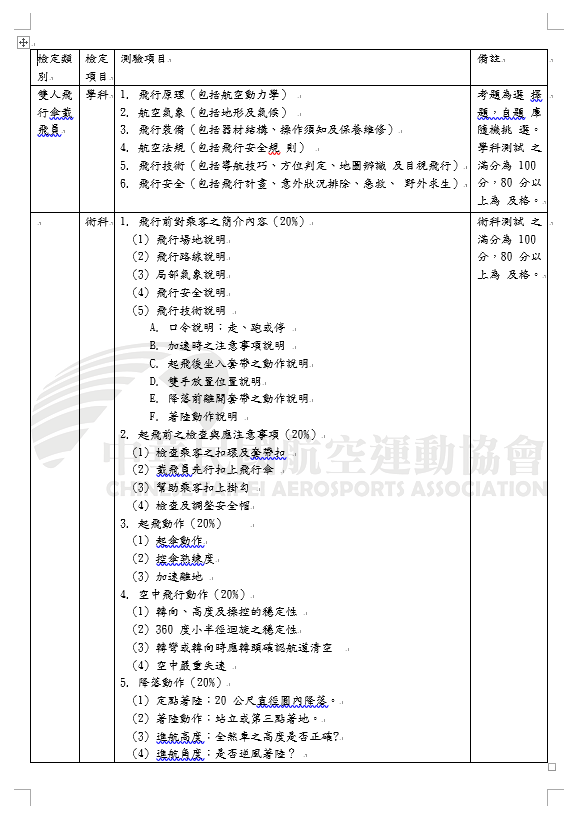 雙人載飛飛行傘(滑翔傘)檢定規範