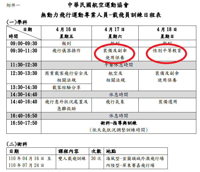【更新通知-110年專業人員載飛員訓練課程】 分類:蘇沛倫30 三月 2021發表於未分類 原110年4月17日【性別平等教育】,與110年4月18日【裝備及副傘使用保養】,因講師時間關係做兩堂課調換時間。 分享此文: 按一下即可分享至 X(在新視窗中開啟) X 按一下以分享至 Facebook(在新視窗中開啟) Facebook 喜歡 正在載入... 相關