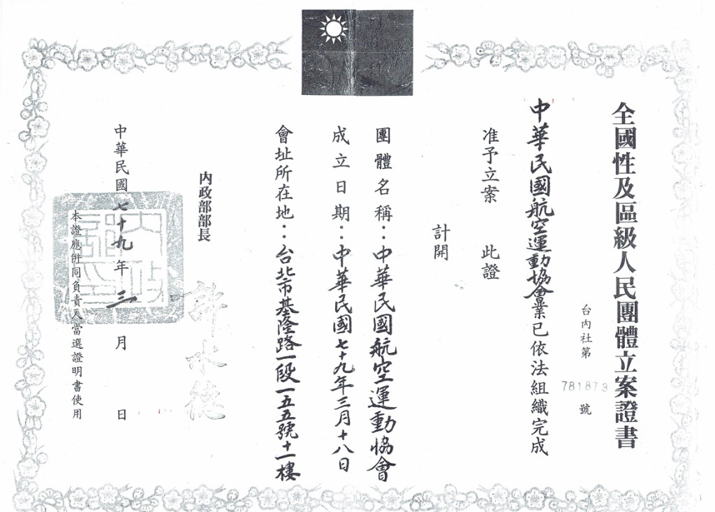 現在英文名稱更改為 : 「 CHINESE TAIPEI AEROSPORTS ASSOCIATION」。